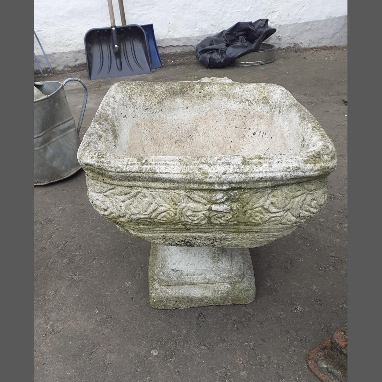 Garden Planter. 45cm high and 39cm across. Stands on nice plinth.