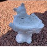 A white painted stone effect bird bath with PEEPING PUSSYCAT - height 1ft approx