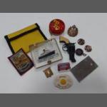 A small mixed lot of trinkets to include small Lone Star cap gun, Beatles badges, RAF cap badge, 1926 cycling medal, Mr Happy yoyo and others