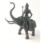 A heavy bronze effect statue with beautiful patina of the Tamil protective God Ayyanar riding an elephant. Approx. L30cm x W15cm x H30cm. An extremely well scupted substantial model.
