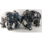 An unusually attractive pair of ceramic elephants glazed in colours of blue/grey/black with random grey textured patterning. Approx. L50cm x W28cm x H37cm.