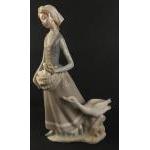 A tall LLADRO figurine of a young woman with basket stands 47cm tall approx