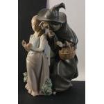 An expressive LLADRO figurine group of a young girl being offered an apple by an elderly woman in witch's hat. Nr.:E-21 F / 33. Approx. 26cm in height. In excellent condition.