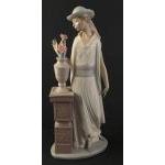 A LLADRO hand-made sculpture No: E-10 F - tall, elegant and delicately coloured Swinging 20s and 30s female figurine standing next to classical pillar and vase of flowers. Approx. height is 34cm. In excellent condition.