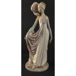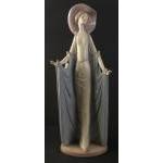 A beautiful tall LLADRO figure of a svelte female in hat and flowing gown. Handmade in timelessly coloured pastel shades. No.: My-16 G /55 / 1428. Approx. 37cm in height. In excellent condition.