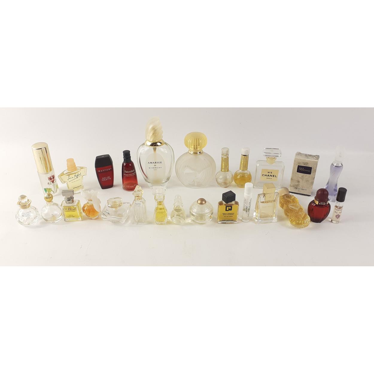 A collection of small perfume bottles to include CHANEL No. 5, SONIA RYKIEL, Ysatis by GIVENCHY, L'Air du Temps, Tresor by LANCOME and lots more