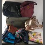 A small selection of bags to include a tan leather crossbody bag, a day bag rucksack, a soft-sided weekend suitcase etc