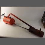 A small box of tools to include a COOPERS 8749 air compressor with fitting for a car cigarette lighter plus the tools needed for pointing a wall.