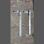 A useful pair of substantial iron hinges and brackets. Each arm measures 24cm.