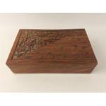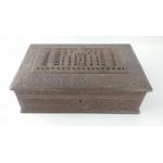 An attractive Indonesian hardwood box with decorative carving and brass inlay. Measurements are approx. 20cm in length by 12.5cm in width and 5cm in height.