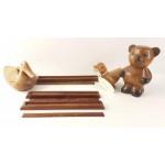 A lot of wooden items to include DAFFY from the DCUK company standing 11cm high, 3 carved boxes containing wooden chopsticks, a Kashmiri hand-carved duck 19cm long, a chubby bear 16cm high