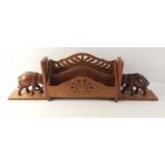 A pair of wooden elephant bookends each 18x18cm along with a wooden 2 tier bill/letter rack 30x17cm