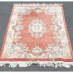An attractive wool rug in shades of coral and cream. Measures 190 x 120cm approx. In good condition