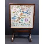 A folding c1930's embroidered firescreen and table with glass front - dimensions 50cm square top x 54cm height approx