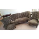 A SUPER SUBSTANTIAL JOHN LEWIS No 00013350003 deep buttoned mink velour three seater sofa and two armchairs - in lovely condition!
