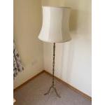 An electric brass floor lamp with large shade on tripod feet - nice quality including a light bulb - ready to plug-in!