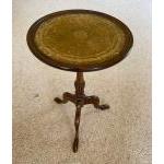 A nice wee WINE side table with faux leather top on tripod leg supports - diameter 1ft approx