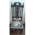 An ANTIQUE SCOTTISH country oak hall chair with barley twist carvings with a hand embroidered seat pad - squarish seat pad dimensions 45cm x 110cm tall approx