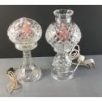 A pair of bee hive shaped table lamps from DUNELM with cream shades, 34cm to top of base. Shades each 20cm high approx.