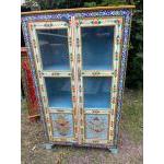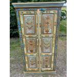 BRAND NEW ITEM UNUSED A vintage ALMIRAH /tall cupboard with two doors with 3 bevelled - hand painted in both sides and top and front facia - TRULY A COLOURFUL STATEMENT STORAGE PIECE Dimensions 92cm x 38cm depth x 150cm height approx