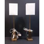 A pair of modern brass table lamps. Standing 70cm approx with shades.