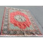 A substantial red based Persian carpet with central medallion measuring 4m by 2.9m approx