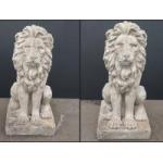 A PAIR of IMPRESSIVE and SUBSTANTIAL stone effect sitting lions each approx 90cm tall - requires 3 men to lift them!