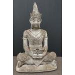 An outdoor contemplative Buddha holding a small bowl. Stands approx 80cm tall