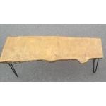 STYLISH! - AN UNUSUAL & SUBSTANTIAL RUGGED-CUT (slice through a hard-wood tree) dining or general use coffee table - 108cm length x 35cm depth one end and 28cm the other end depth x height 45cm approx