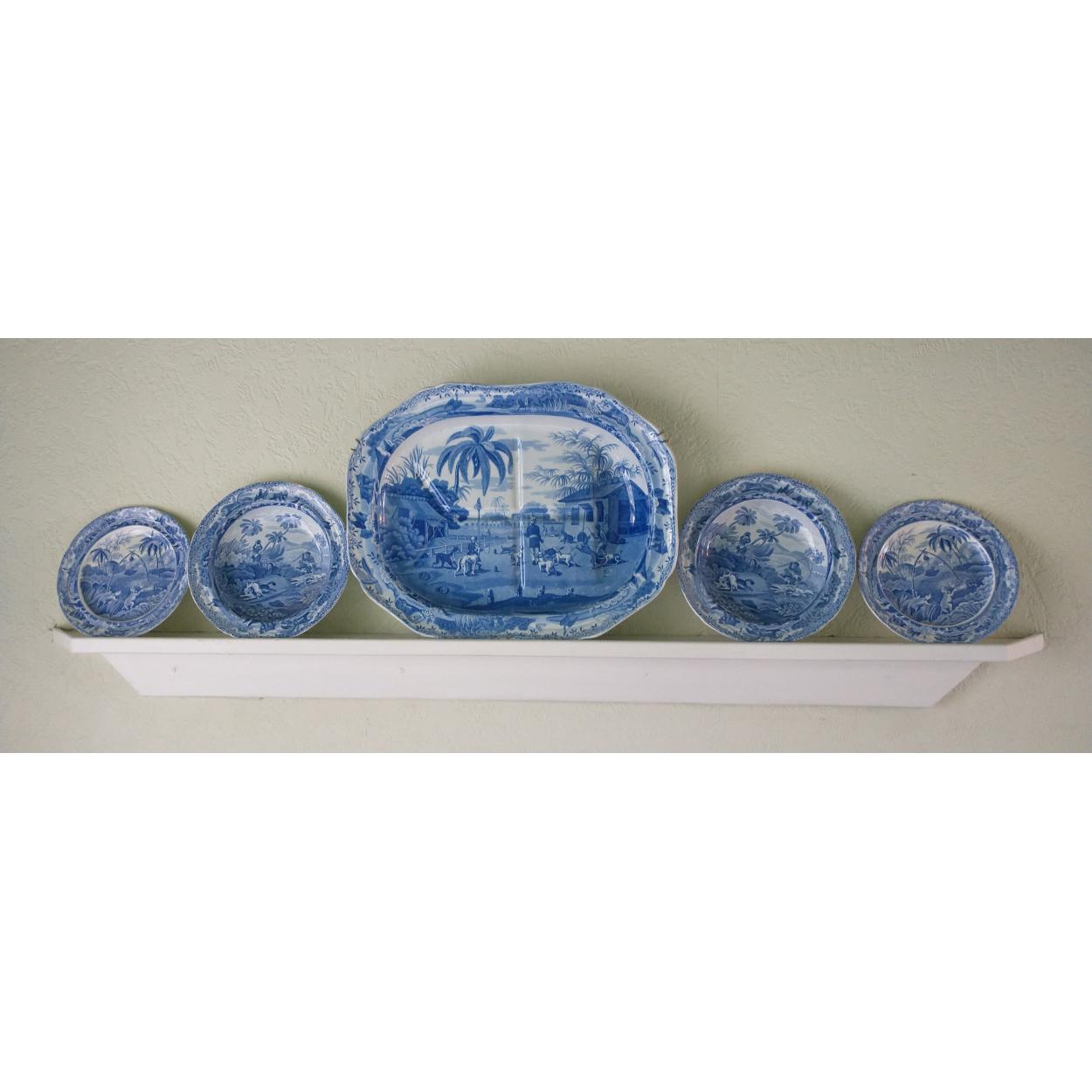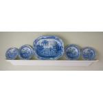 SPODE BLUE ITALIAN Oval Platter in Rich blue Chinese inspired pattern ' Dooreahs Leading Out Dogs ' stamped on the underside, created with hand applied lithographs underglaze for vibrant colour and durability on a porcelain white body - simply STUNNING! dimensions 47cm x 36cm (selling via the internet right now at £180!) And also with two SPODE soup bowls ' Chase After A Wolf' stamped on the underside dimension 24.5cm diameter, And Also with 2 SPODE side plates same pattern in blue and white with 'Common Wolf Trap' stamped on the underside