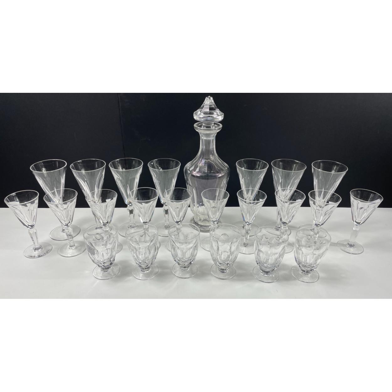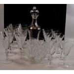 WATERFORD c1960's decanter height 33cm with stopper with a nice Birmingham Hallmarked silver Sherry label 8.75g, with 8 wine, 10 sherry and 6 tumblers