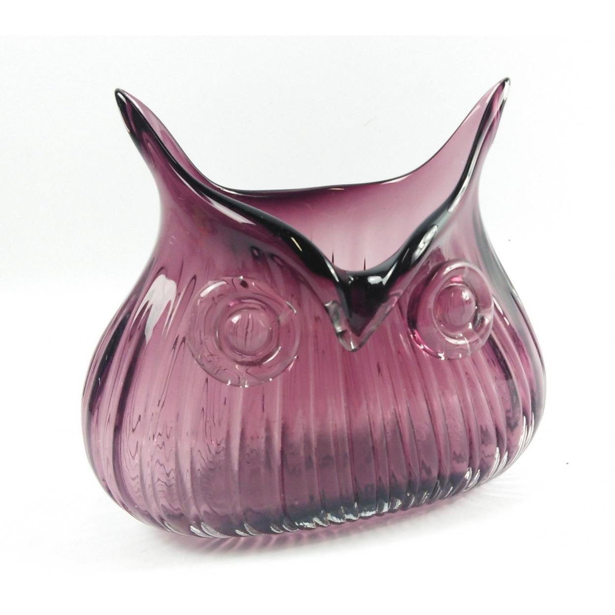 TWIT TWOO! A nice retro moulded purple glass vase in owl form - quite an UNUSUAL piece! dimensions 17cm high x 17cm wide approx
