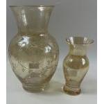 Two attractive GOLD LUSTRE VASES with etched floral patterns one stands 16cm and the other 24cm