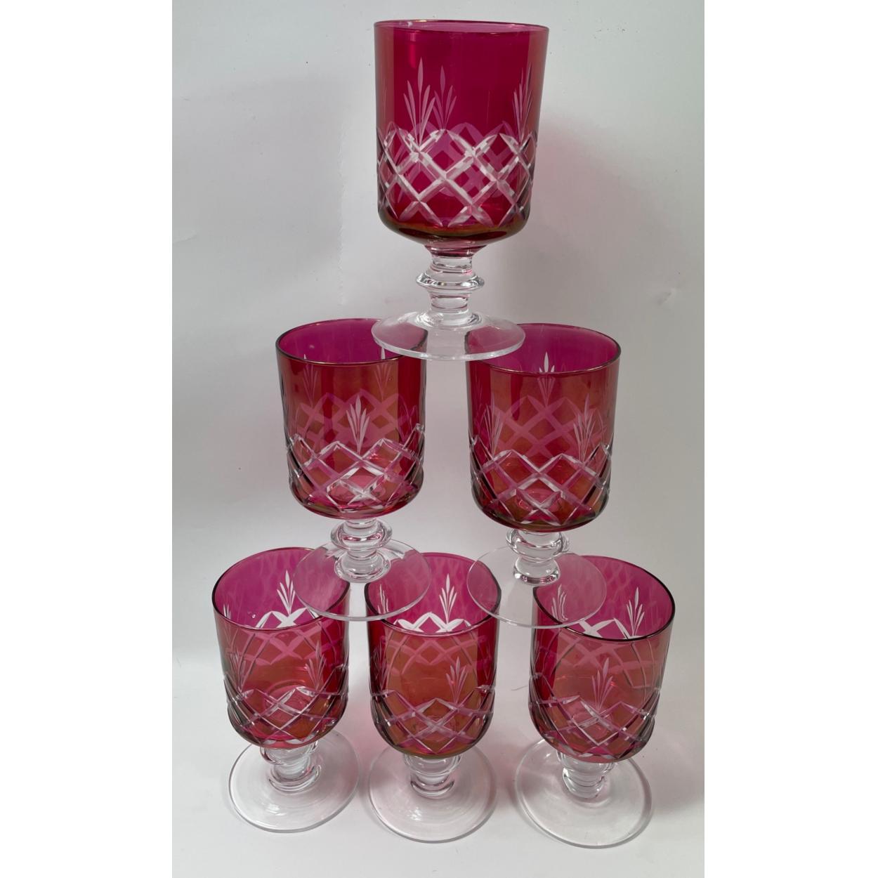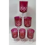 NICE QUALITY! A set of six cranberry cut-glass wine goblets each 12cm high