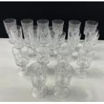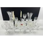 A mixed lot of CRYSTAL to include 3 sets of 5 sherry/liqueur glasses and 2 vases at 21 and 23cm high plus much more