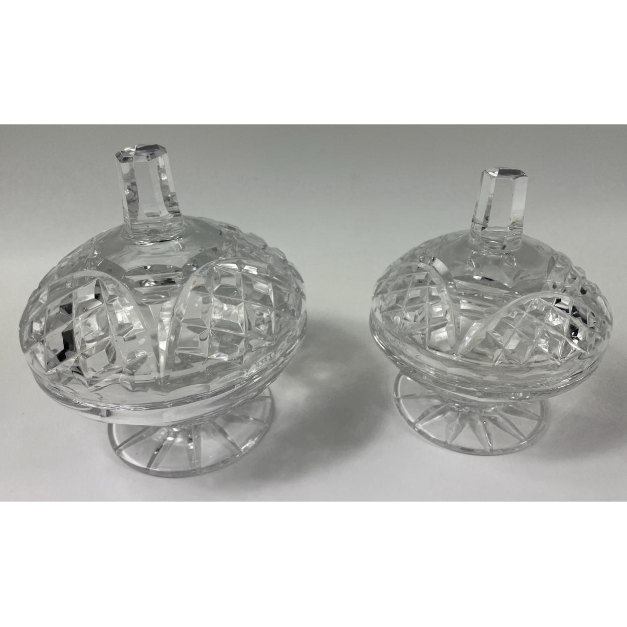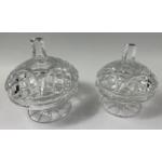 Two matching crystal BONBON dishes approx 13 and 15cm high (small chip in lip of smaller dish but does not detract)