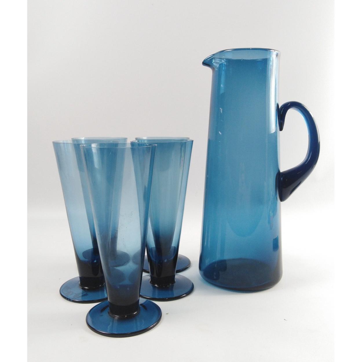 Lovely Smokey Blue Glass Lemonade Set of jug and 5 glasses. [Jug 30cmm tall and glasses19cm high ]