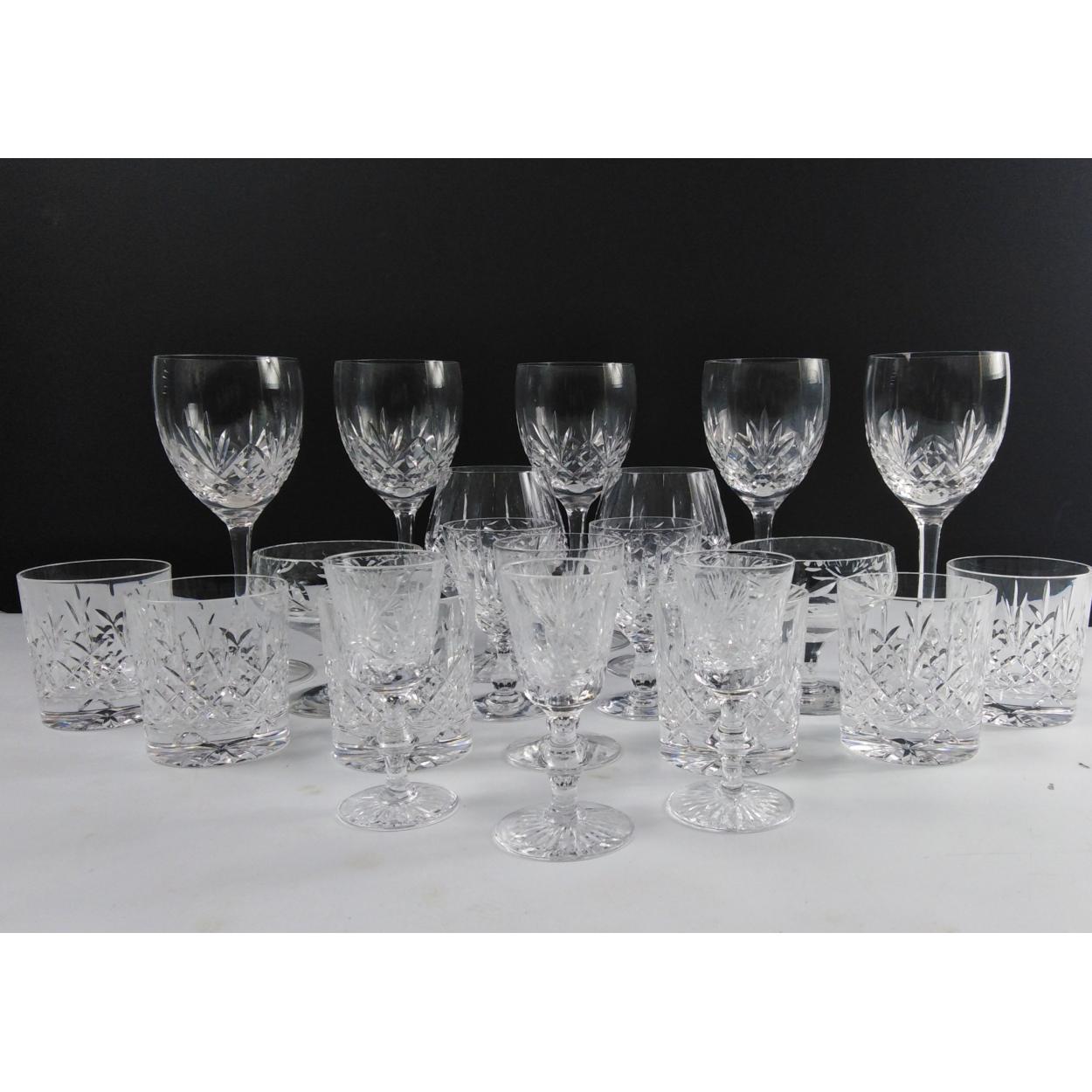 A mixed collection of EDINBURGH CRYSTAL glasses to include 2 BRODICK brandy glasses, 5 TAY wine glasses, 3 APPIN port glasses, 3 STAR OF EDINBURGH liqueur glasses, 2 champagne bowls, 6 small whisky tumblers and 1 bell