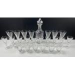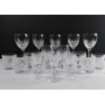 A nice quality CUT-GLASS decanter and a large assortment of drinking glasses