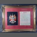 A large framed heraldic family crest, for the GRAY and McNAIR families, frame size 69x54cm