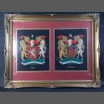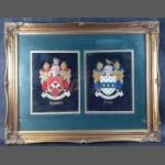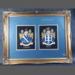 A large framed heraldic family crest, for the FROTHINGHAM and SHIELLS families, frame size 69x54cm