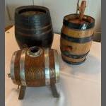 A collection trio of small ANTIQUE coopered barrels for port and sherry - tallest 35cm approx