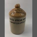 An interesting 1 gallon stoneware flagon by Govancroft of Glasgow standing 31cm tall, embossed SOUTH AFRICAN WINES & IMPORTERS (PVT) LTD and "APEX FOR QUALITY"