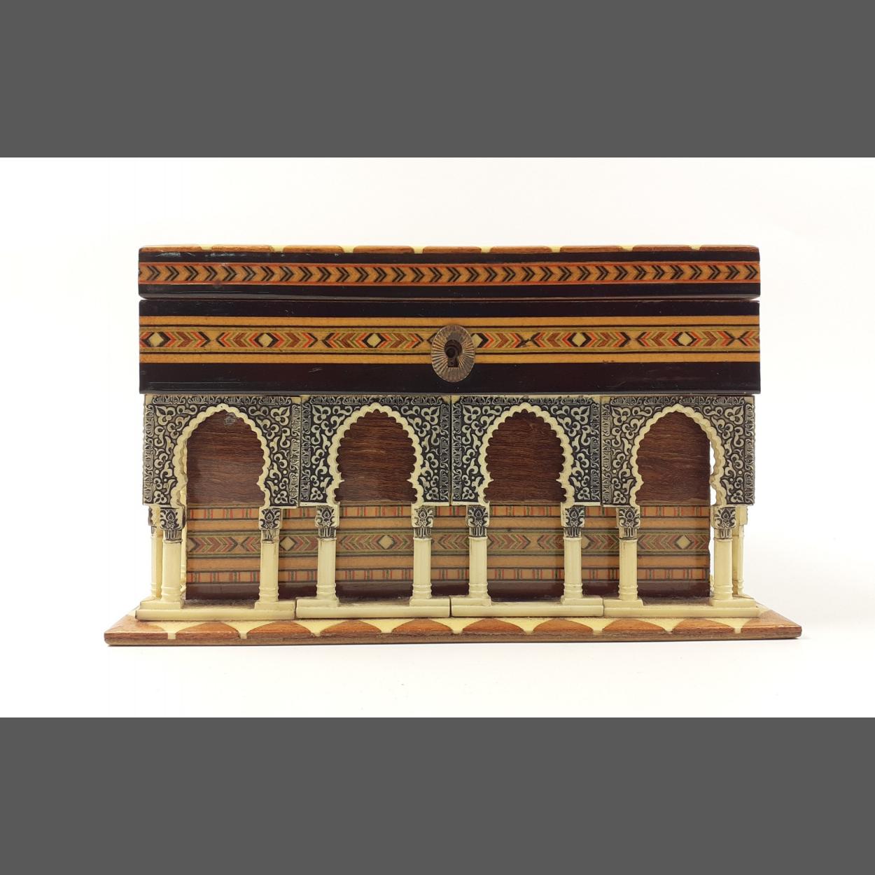 A Moorish influenced marquetry inlaid box 12Hx18W x18D cm. A beautiful piece in good condition