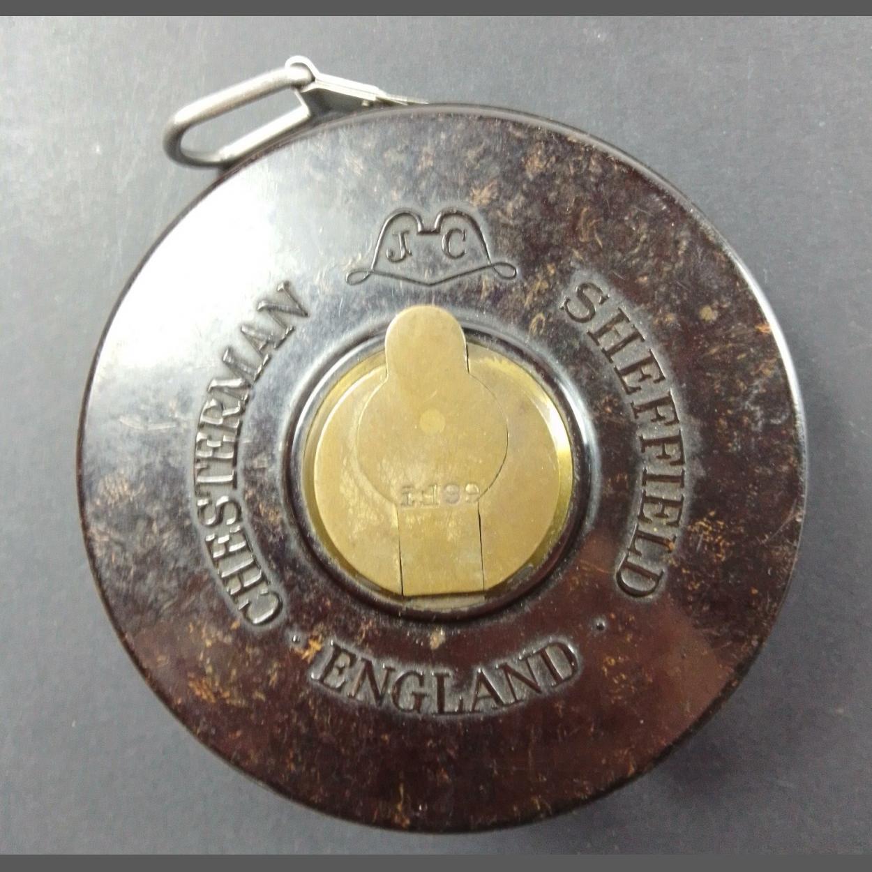 A superior quality Bakelite 66ft CHESTERMAN of Sheffield retractable bowling tape measure