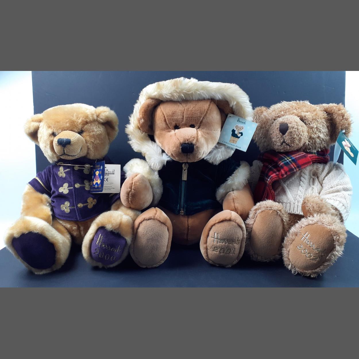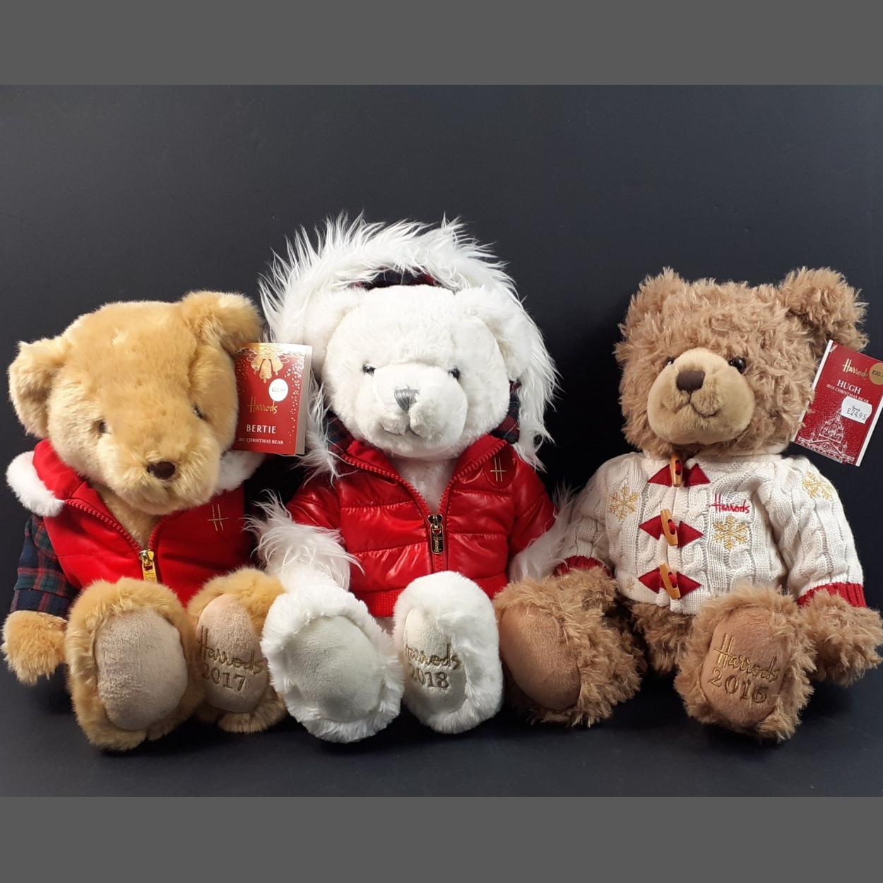 Three HARRODS Christmas Bears from 2016, 2017 and 2018 in as new condition, with tags