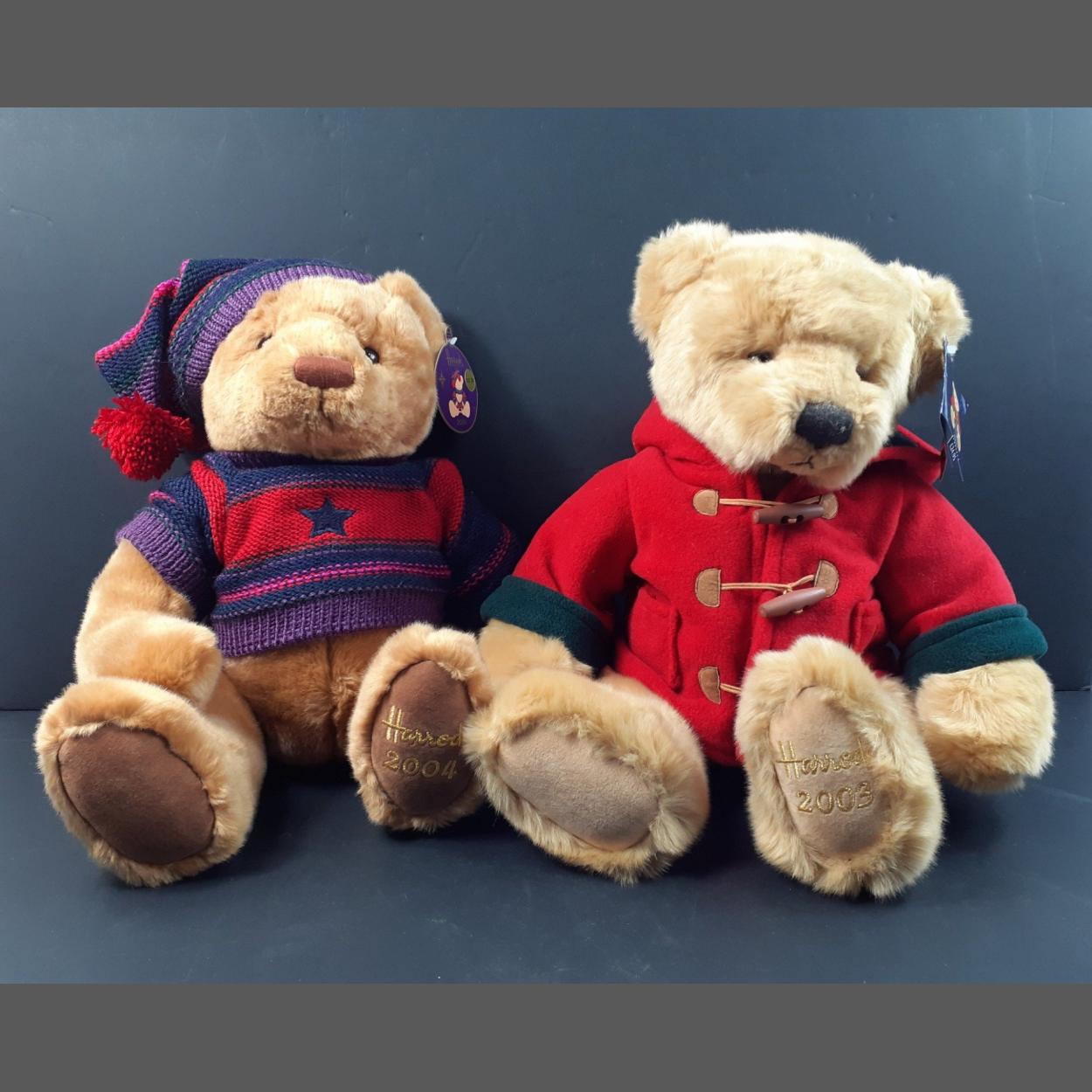Two HARRODS Christmas Bears from 2006 and 2007 in as new condition, with tags