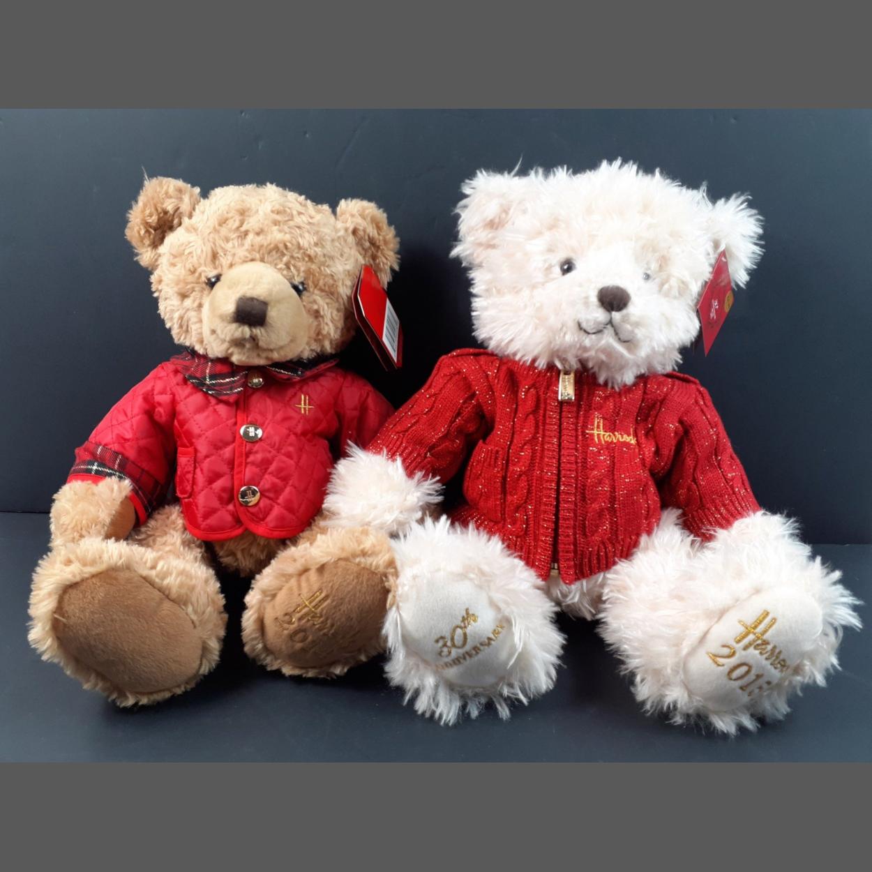 Two HARRODS Christmas Bears from 2014 and 2015 (30th ANNIVERSARY release) in as new condition, with tags