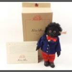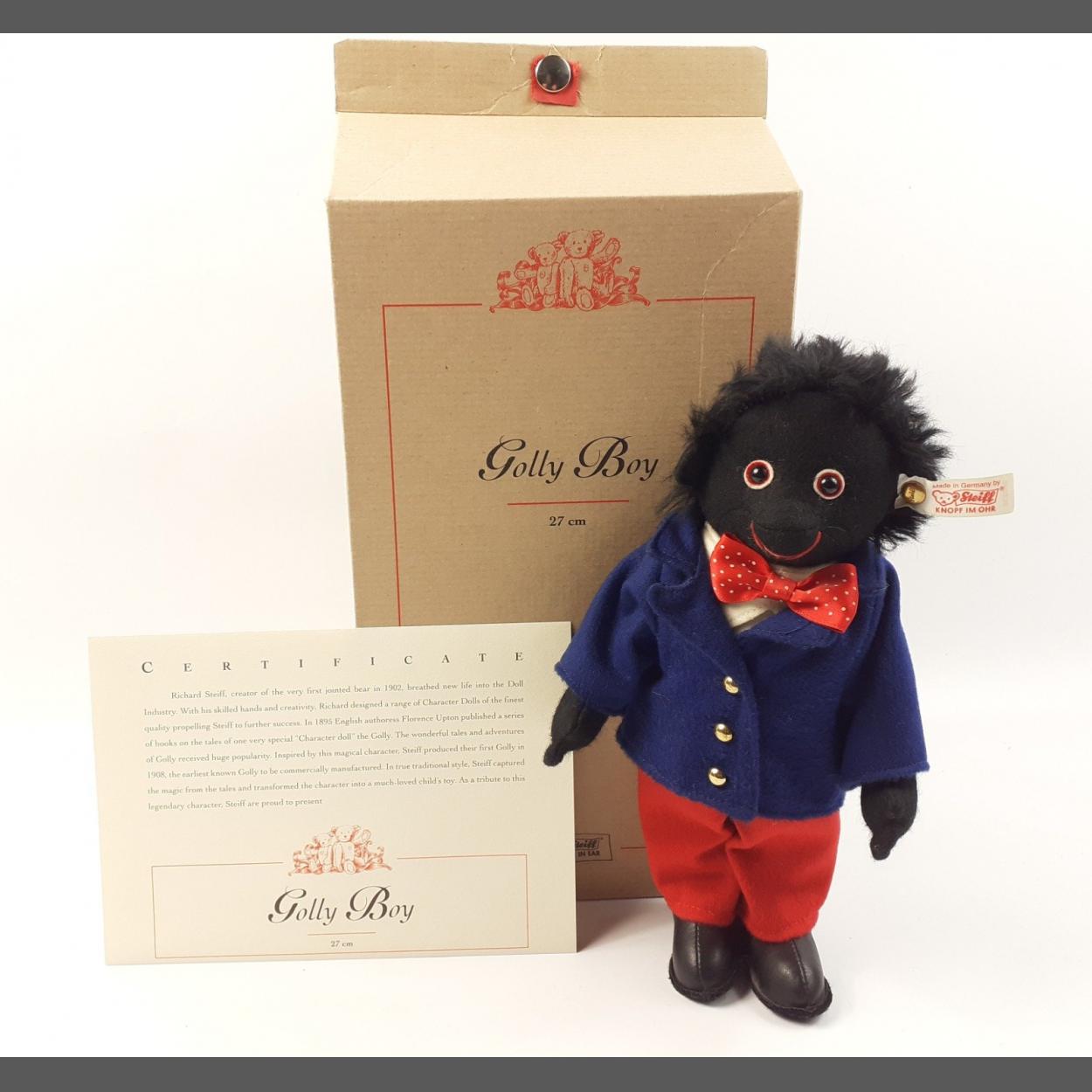 A STEIFF Golly Boy standing 27cm high with mohair, reference 660238, number 665 of a limited edition of 2000 produced in 2001. Comes in original box with certificates