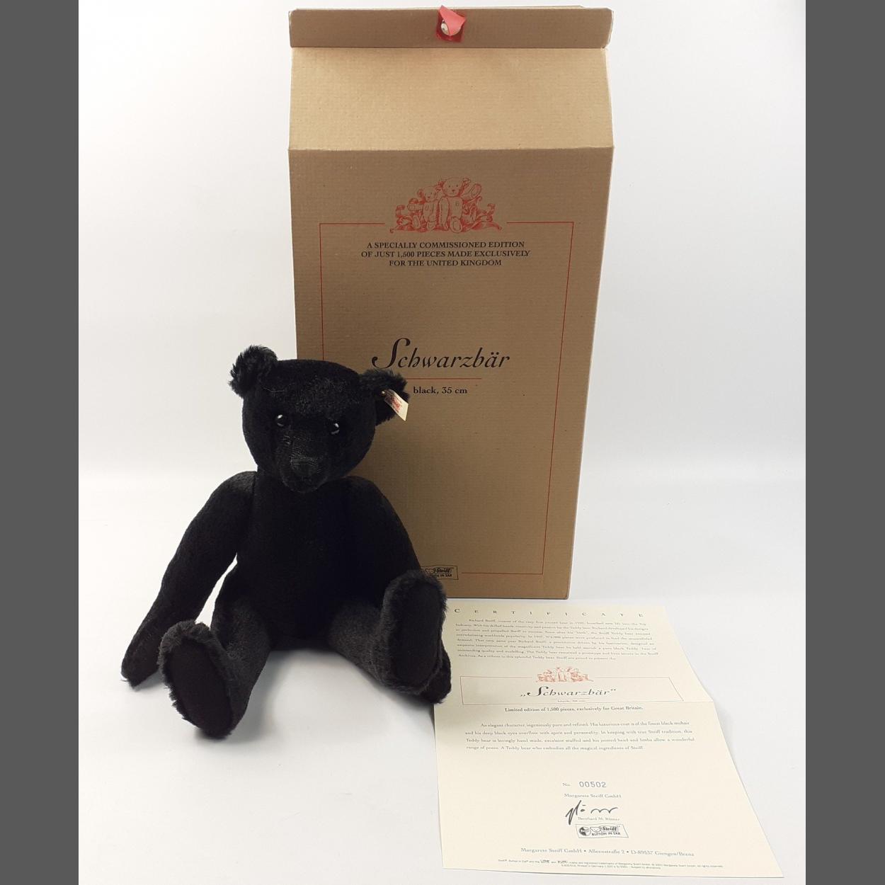 A STEIFF Schwarzbar black growler bear standing 35cm high, reference number 660627, from a limited edition of 1500 in 2001 with certificate number 00502 in original box